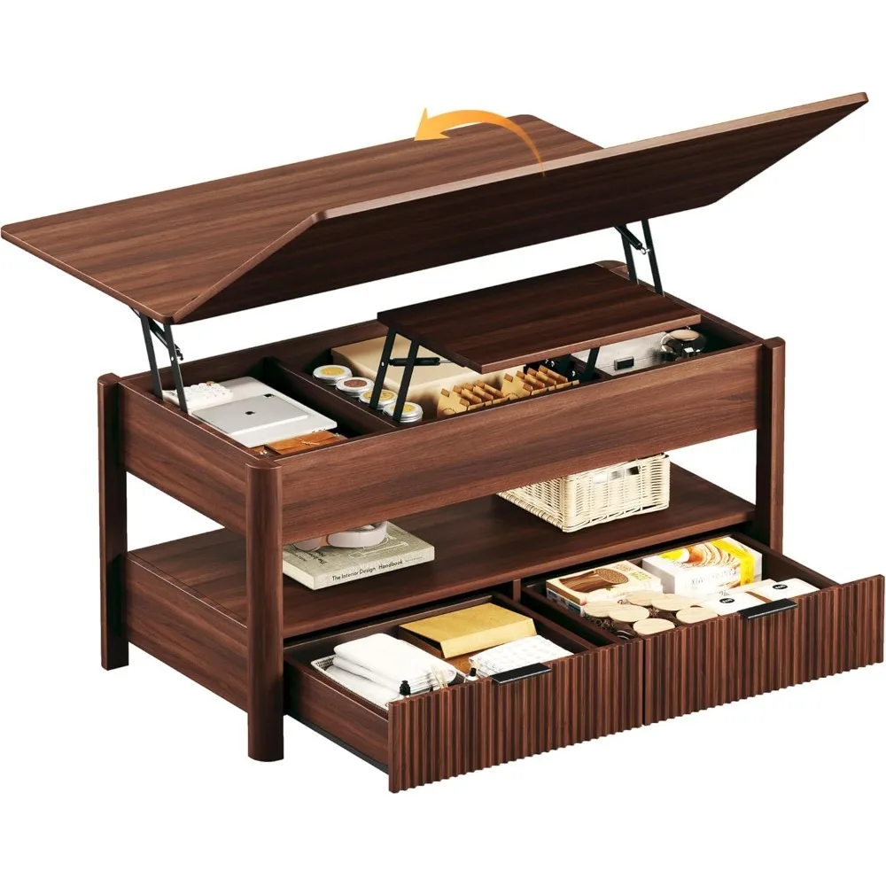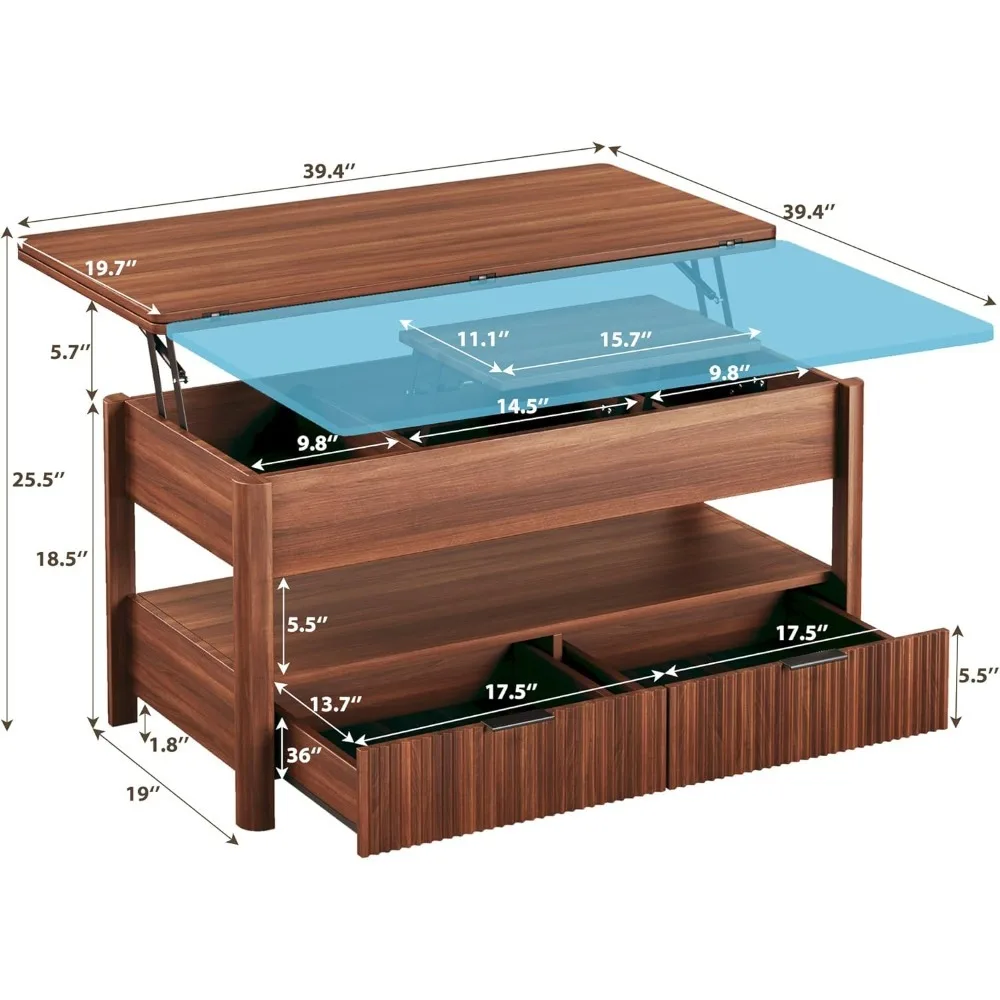 40″ Lift Top Coffee Table, 4 in 1 Square Coffee Table with Storage Shelf & 2 Drawers, Modern Coffee Tables