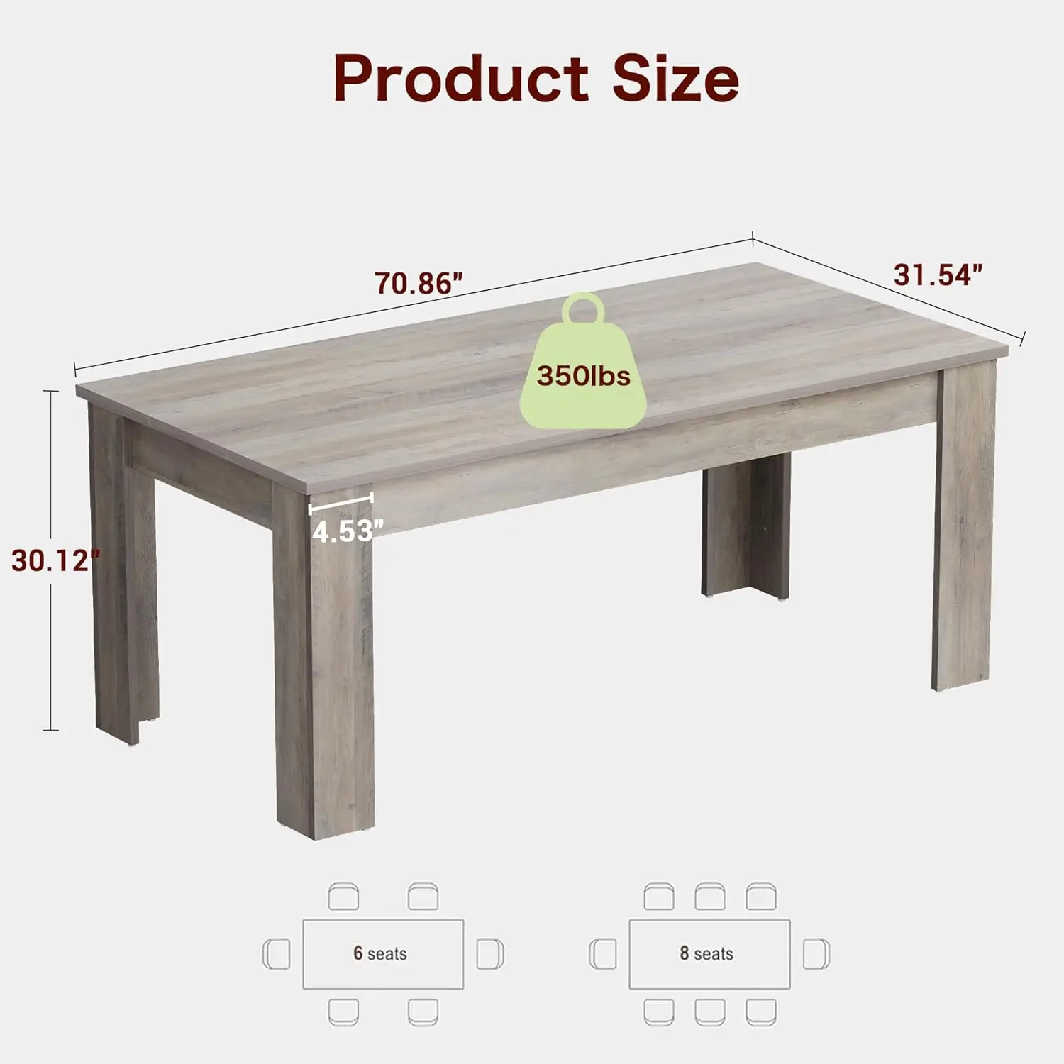 71″ Long Farmhouse Dining Table for 6-8, Rustic Gray Wooden Table with Sturdy Legs for Kitchen or Office