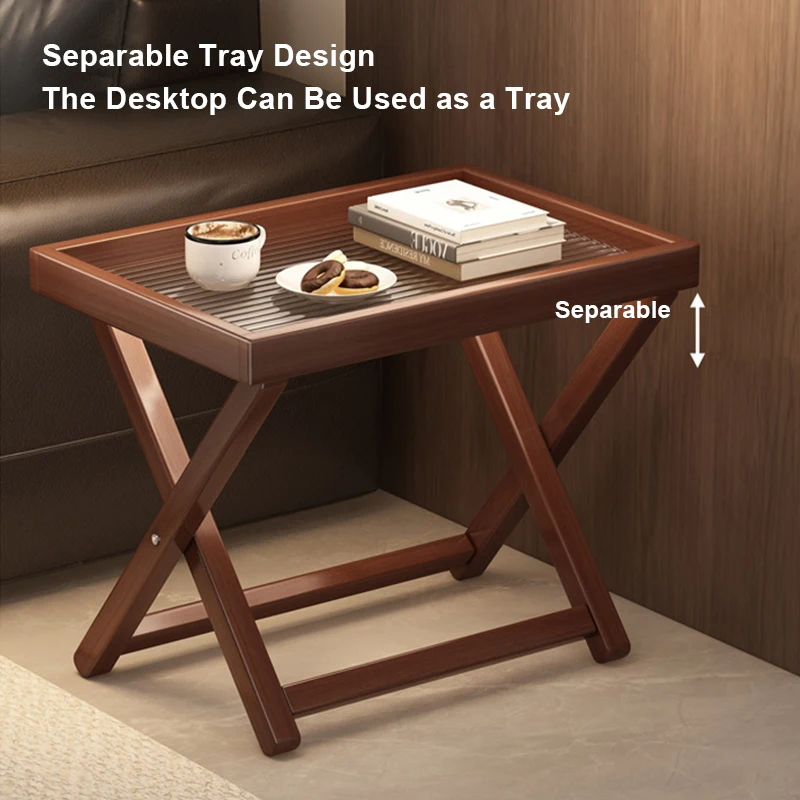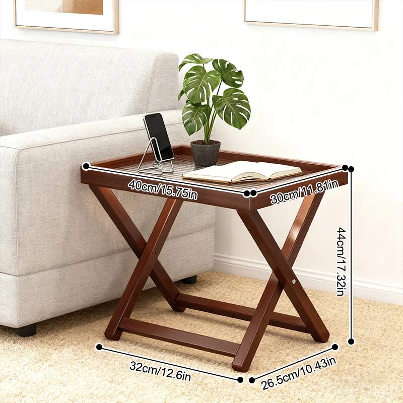 Bamboo Folding Side Table,Durable Tv Tray Bed Table,Small End Table For Living Room, Bedroom, Portable Storage Table