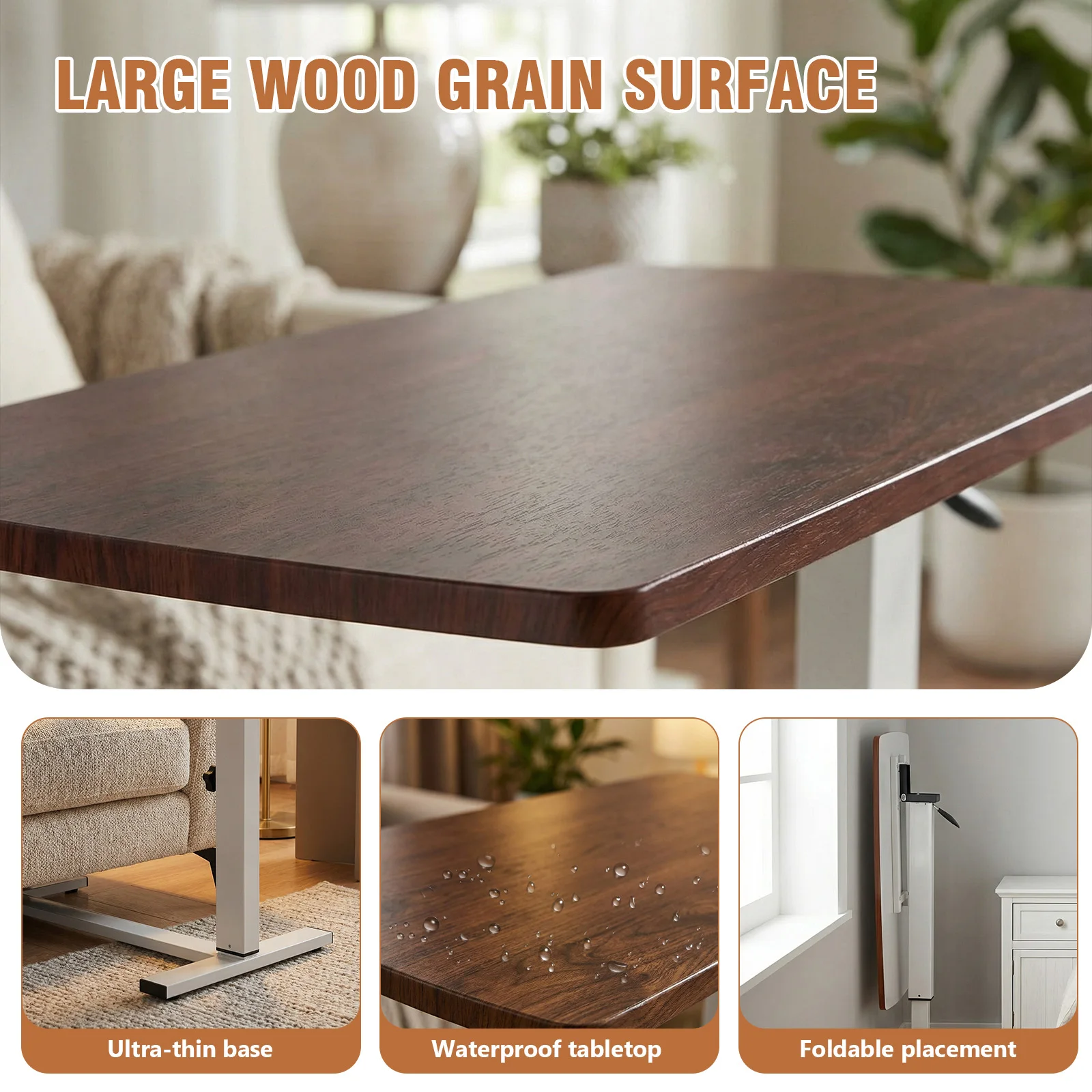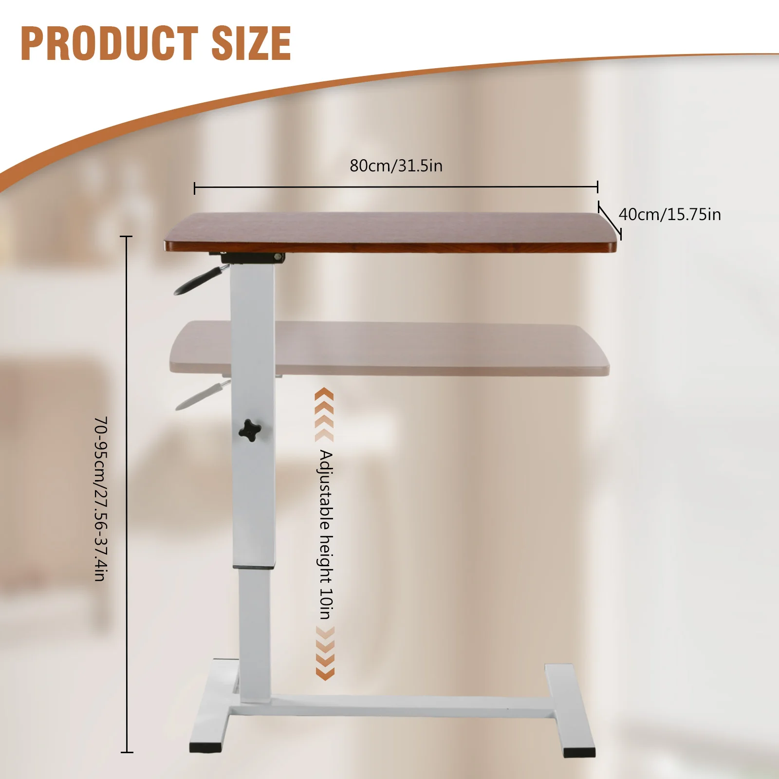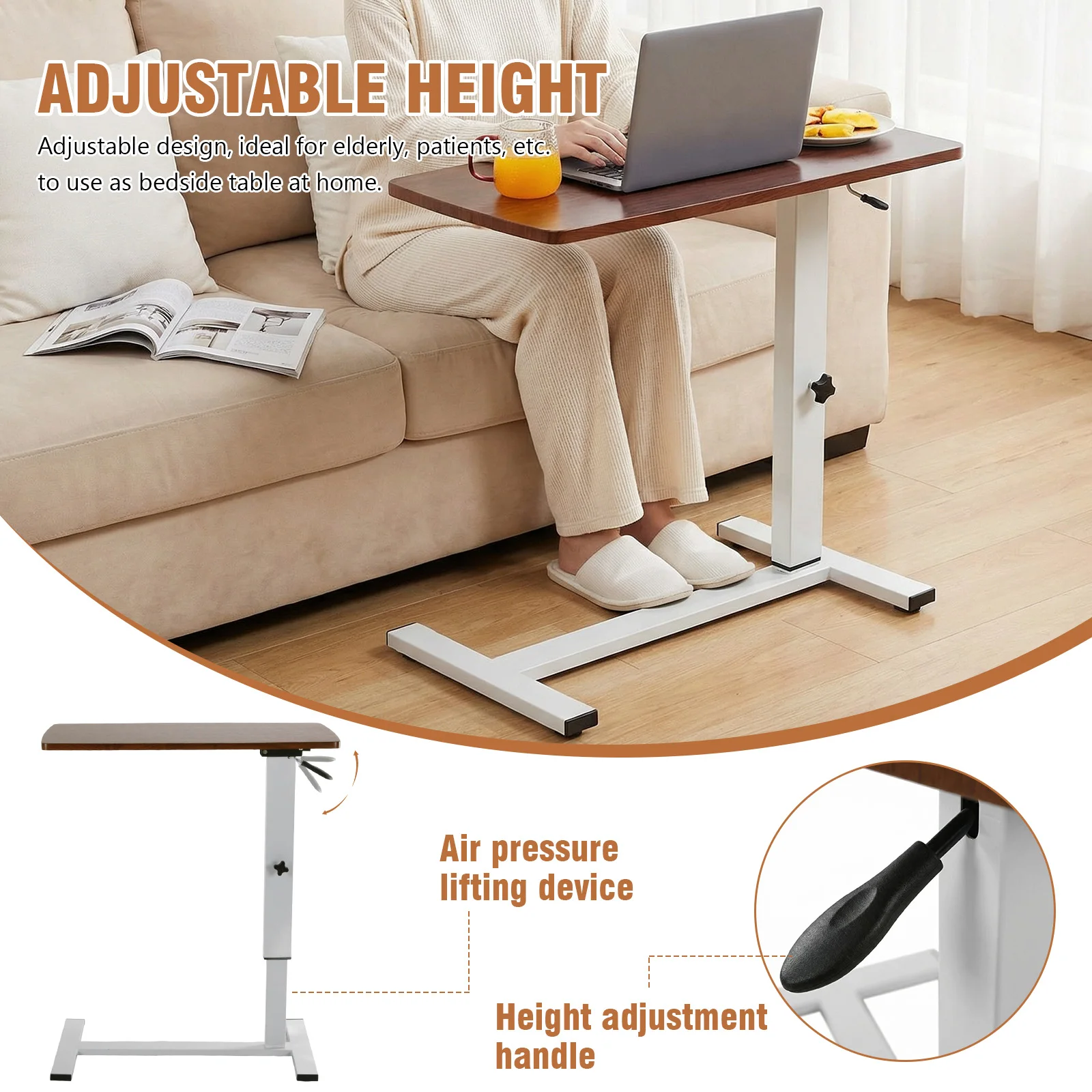 Bed Rolling Laptop Table with Wheels Movable Overbed Tables 27.56-37.4in Adjustable Height for Living Room Bedroom Hospital Use