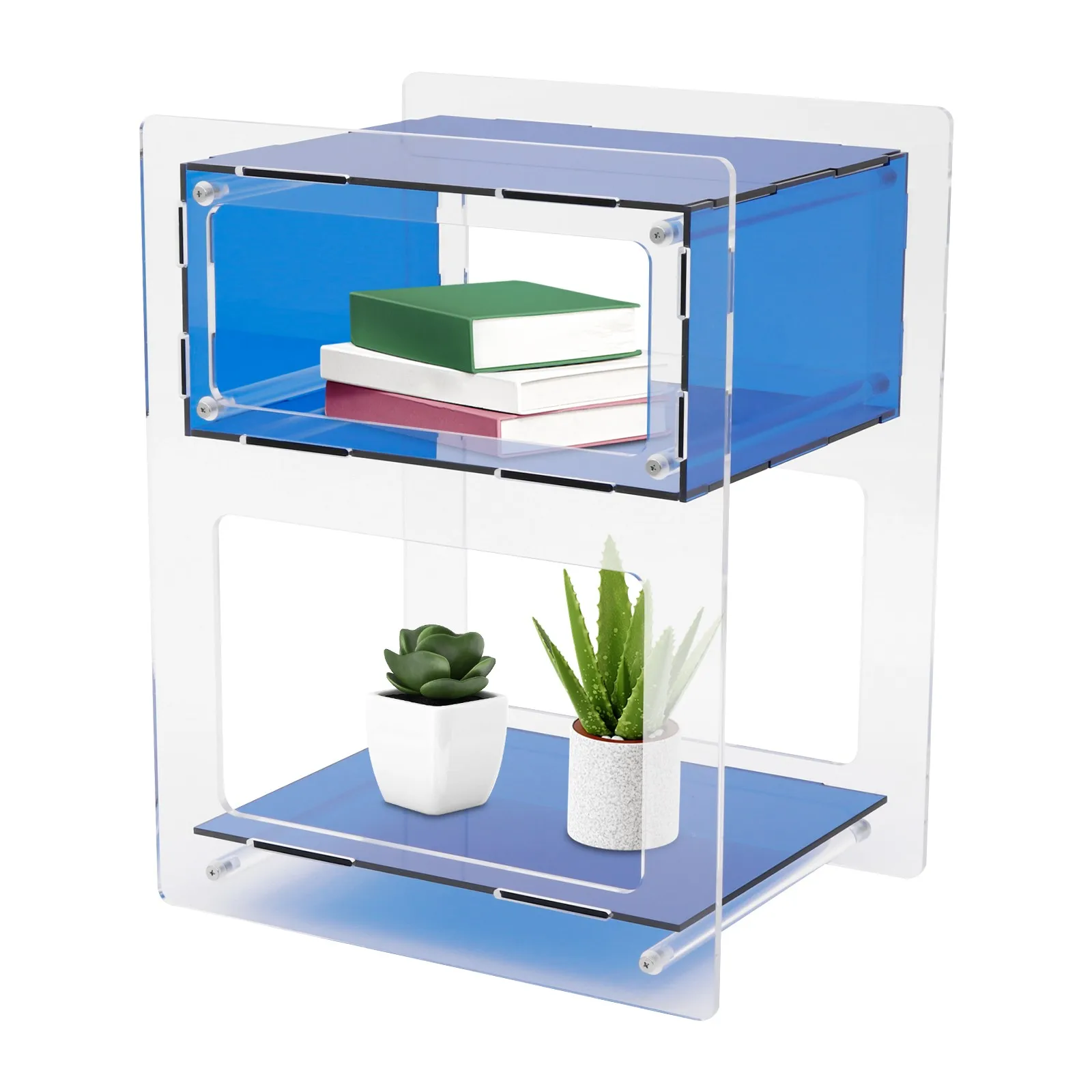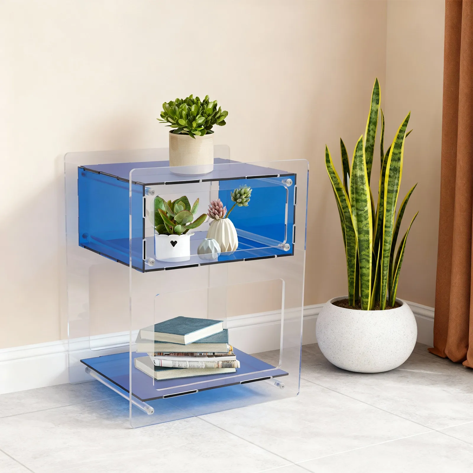 Blue Acrylic Side Table, Acrylic Nightstand, Rectangle Storage Shelf