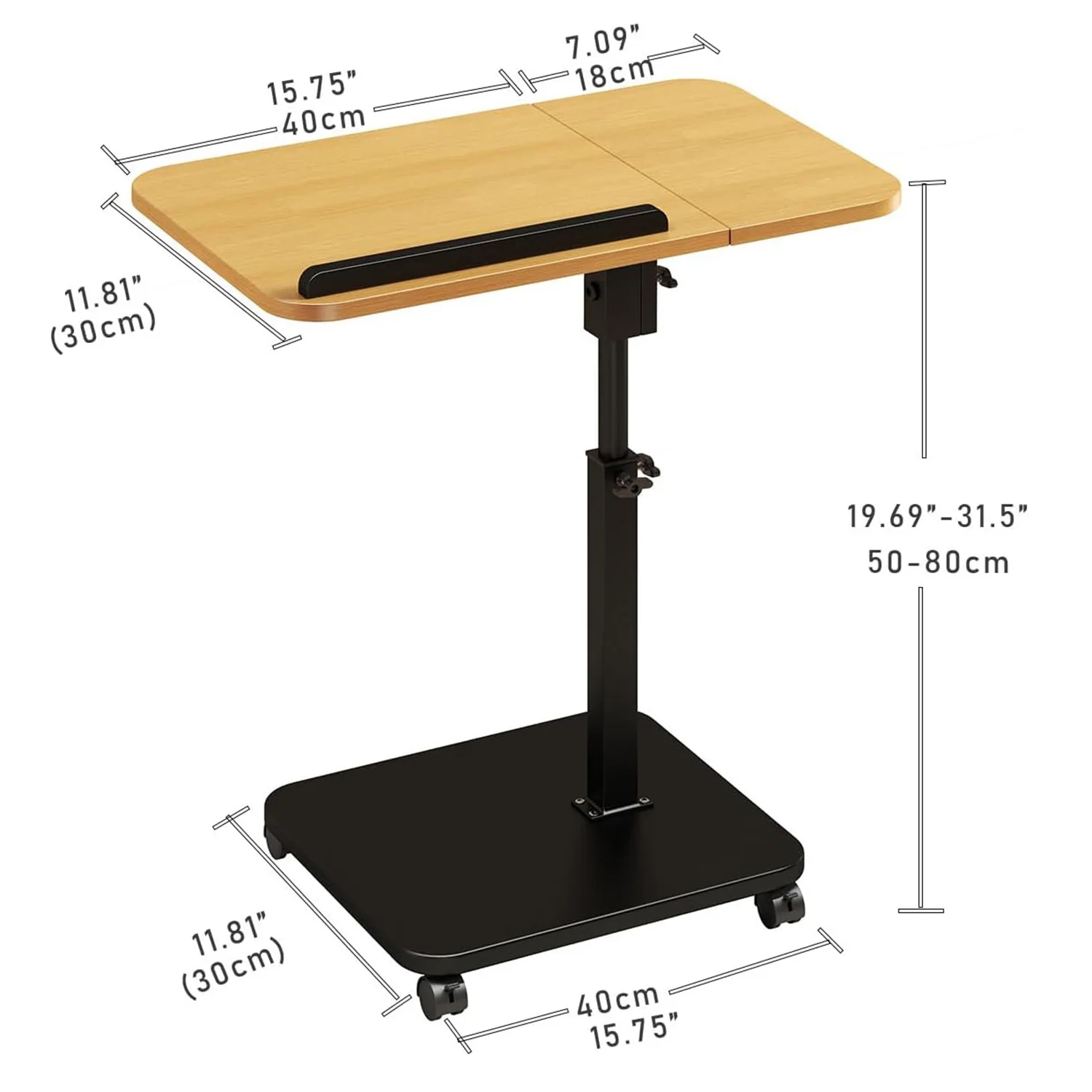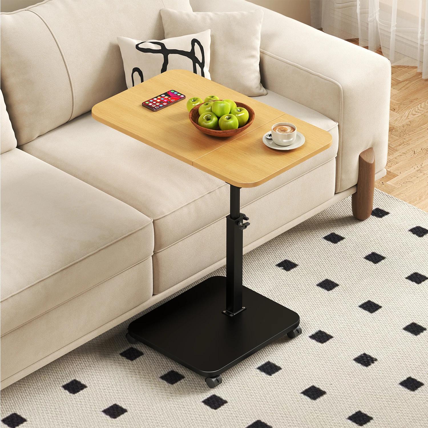 C-Shape Side Table, Height Adjustable Sofa Table Coffee Snack and Bed End Table Mobile Rolling Table with Wheels for Living Room