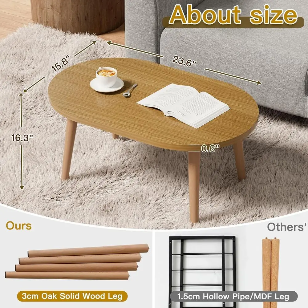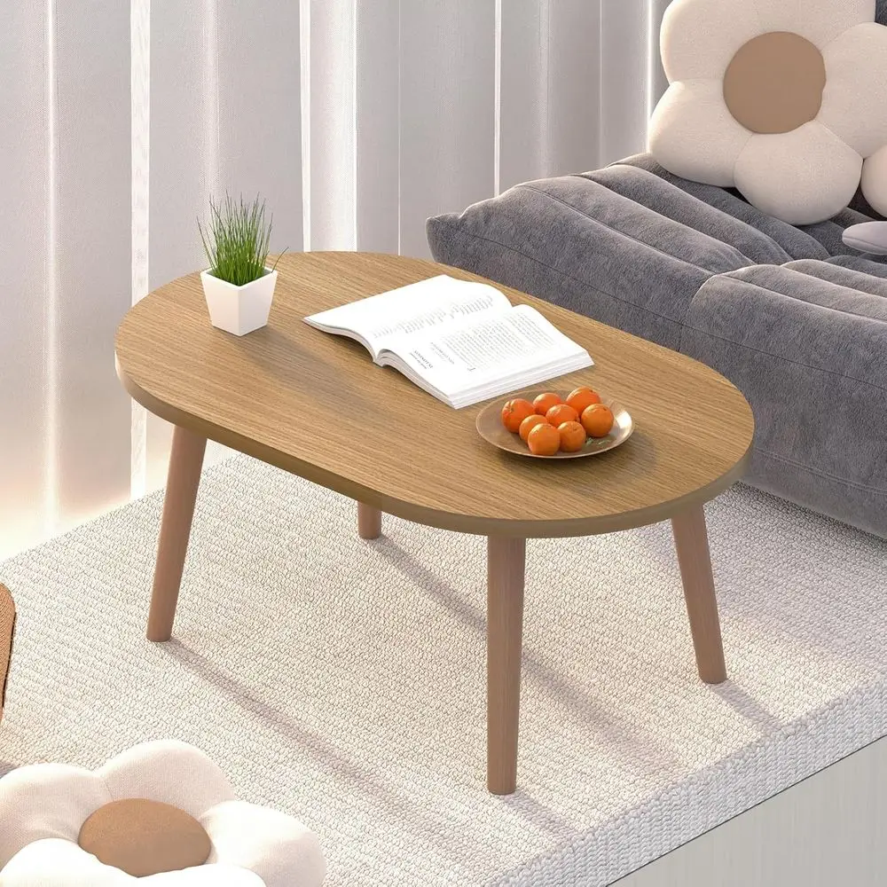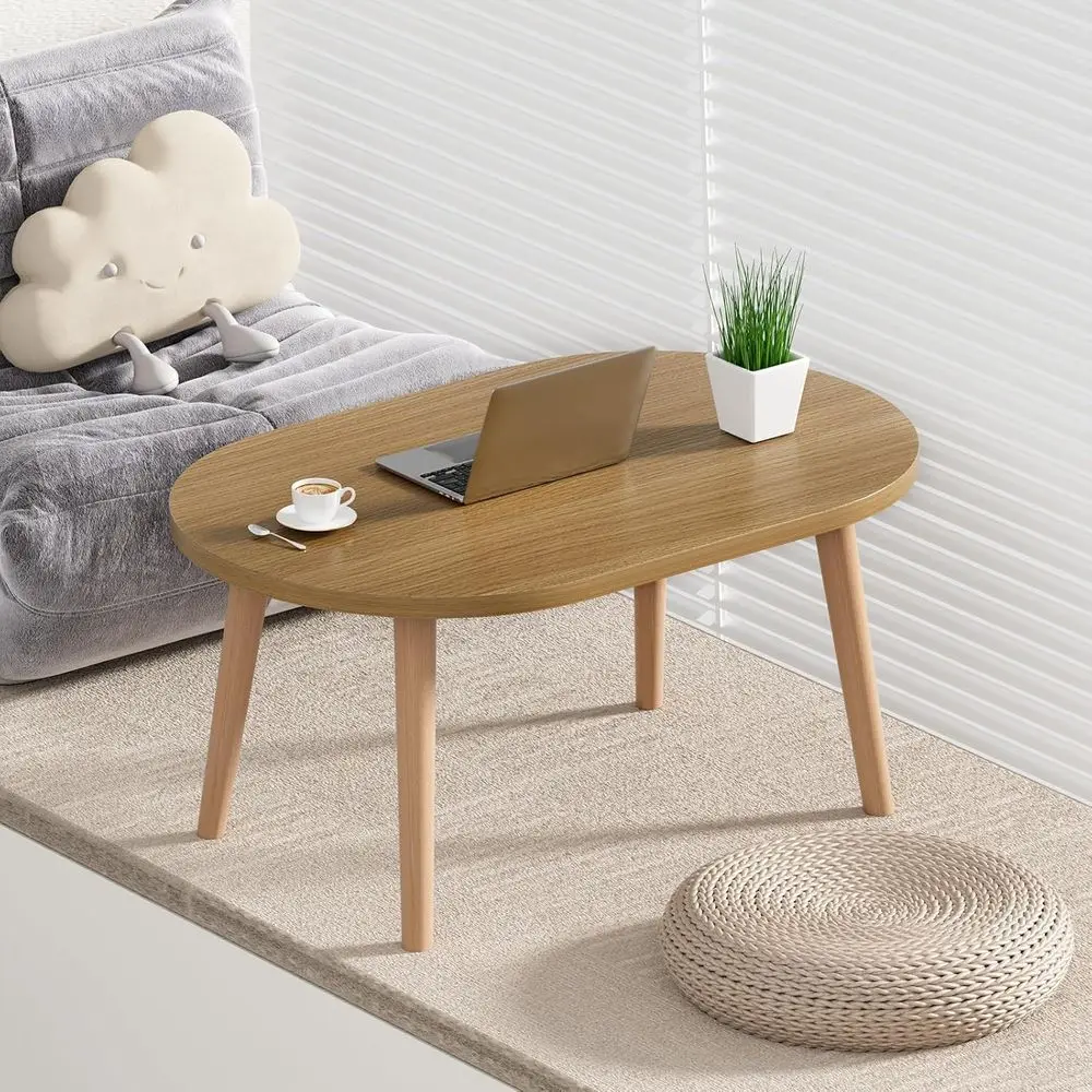 Compact Solid Wood Floor Desk, Japanese-Style Low Table for Living Spaces, Brown Oval Coffee Table