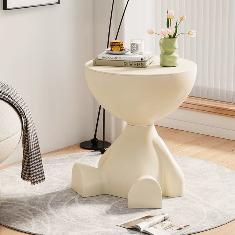 Creative Cream Style Flat Top Coffee Table, Movable Round Side End Table for Living Room Sofa, Bedroom Bedside Corner Table Home