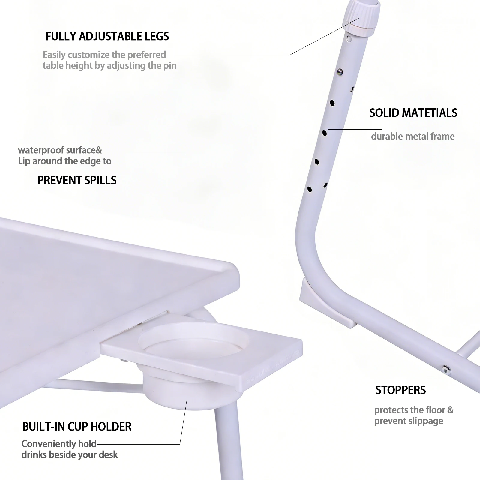 Folding Couch Table Trays with 6 Heights and 3 Tilt Angles Portable Laptop Desk with Cup Holder for Eating Snack Food Home Bed