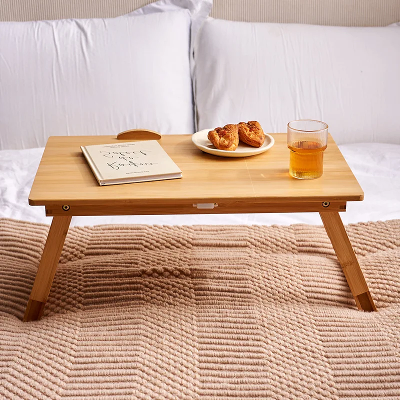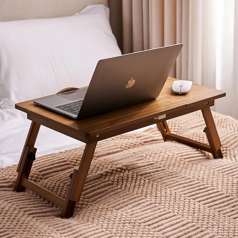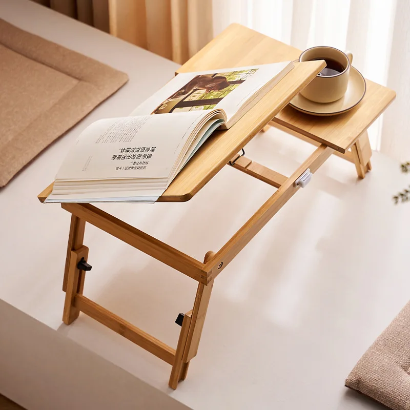 Free installation folding bed table, bamboo and wood multifunctional computer desk, bedroom home study desk, flip small table