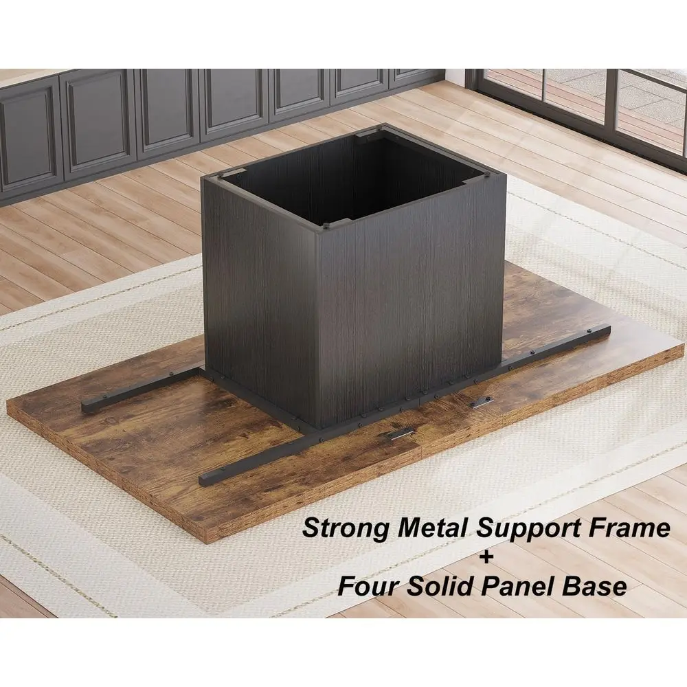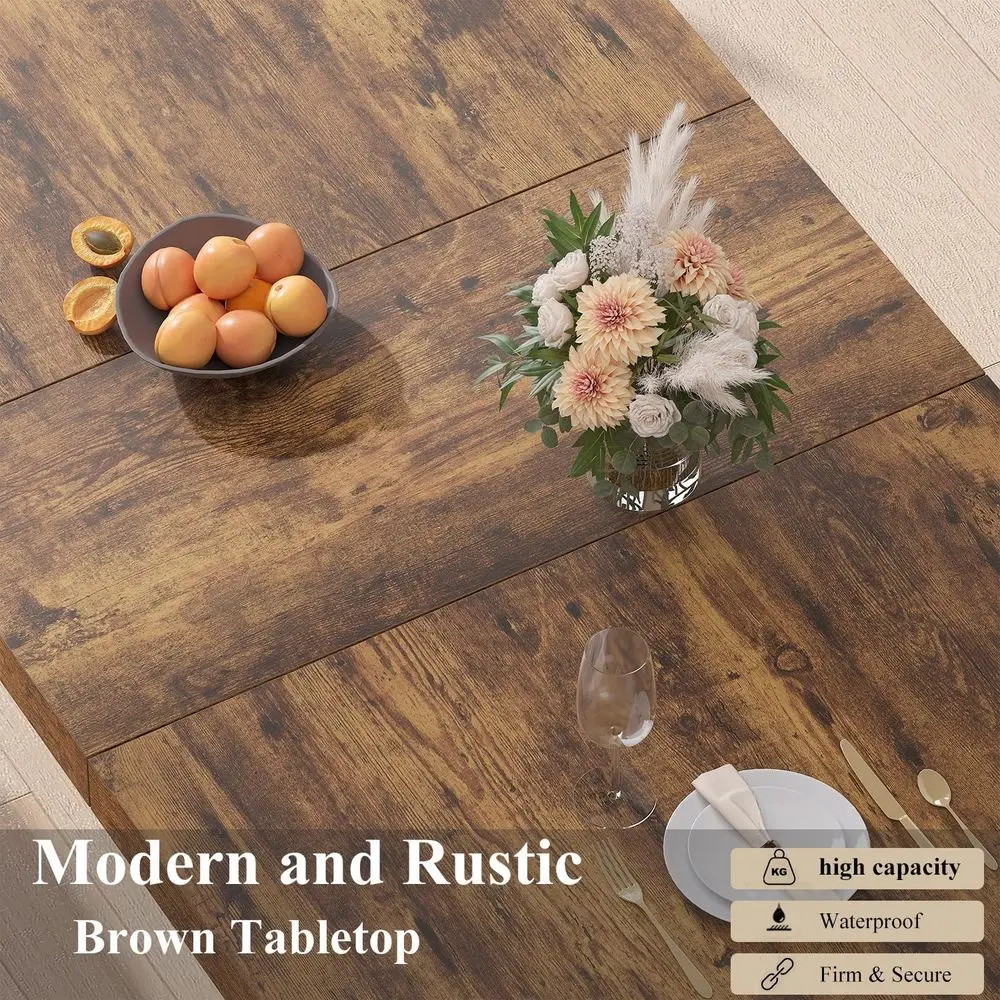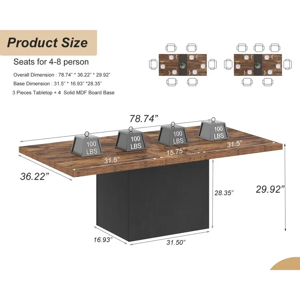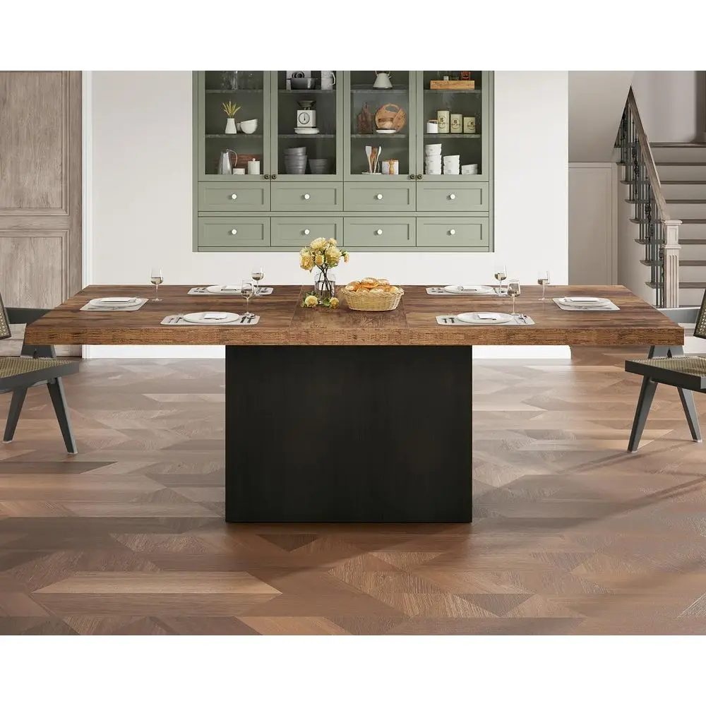Large Rustic Brown Wood Dining Table, 78.74 for 6-8, Strong Black Base, Ideal for Industrial or Home Gatherings