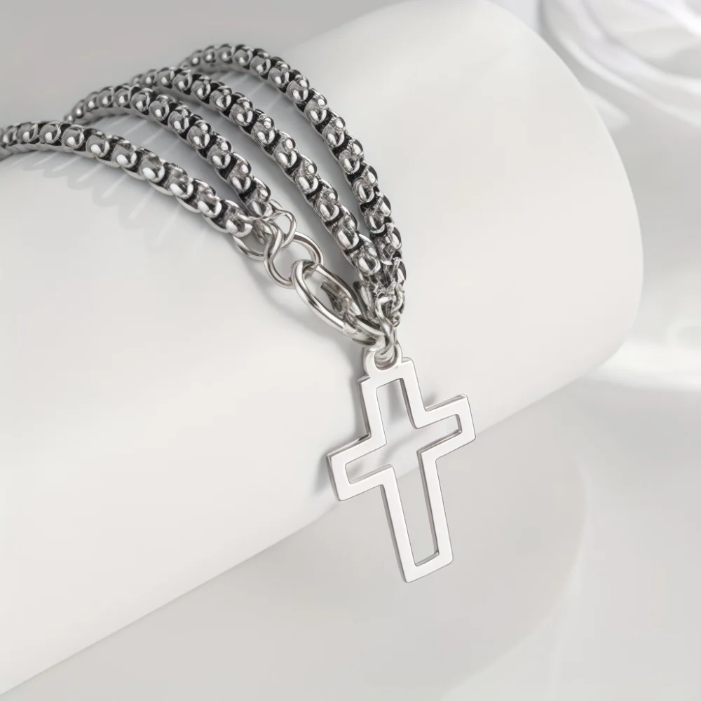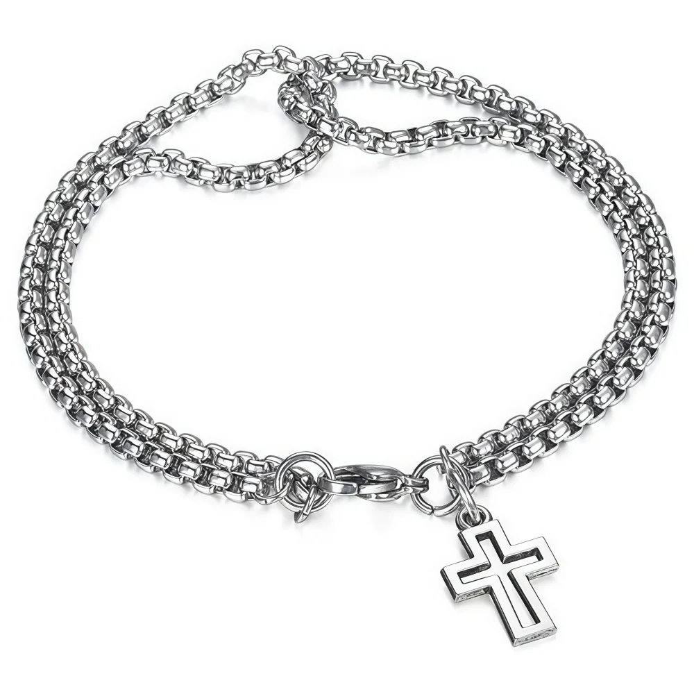 Men’s Fashion Double Chain Cross Hollow Wrist Bracelets Lobster Claw Clasp Stainless Steel Bracelet Hip Hop Punk Party Jewelry