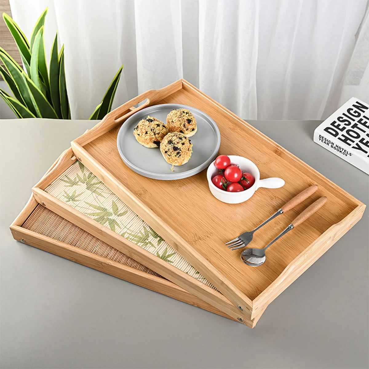 Multifunction Breakfast Dessert Tray Bamboo Mini Dining-table Folding Table For Bed Desk Household Living Room Bedroom Supplies