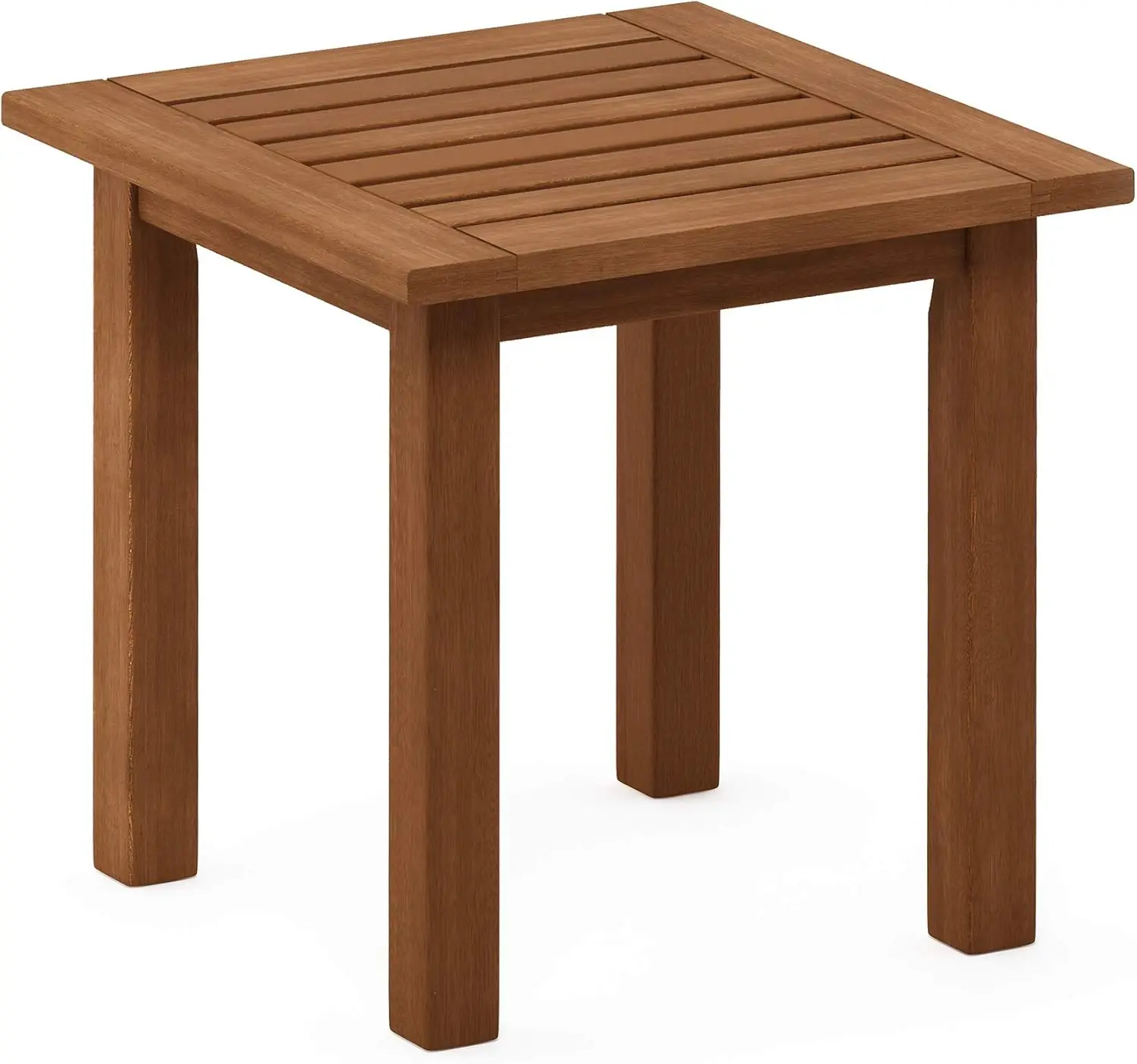 Natural Hardwood Outdoor Patio End Table with Slatted Top and Stable X-Brace Frame