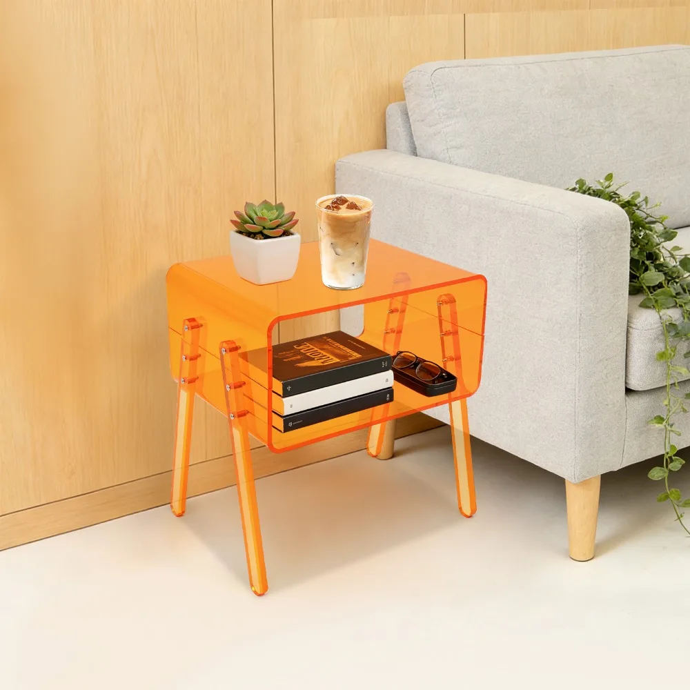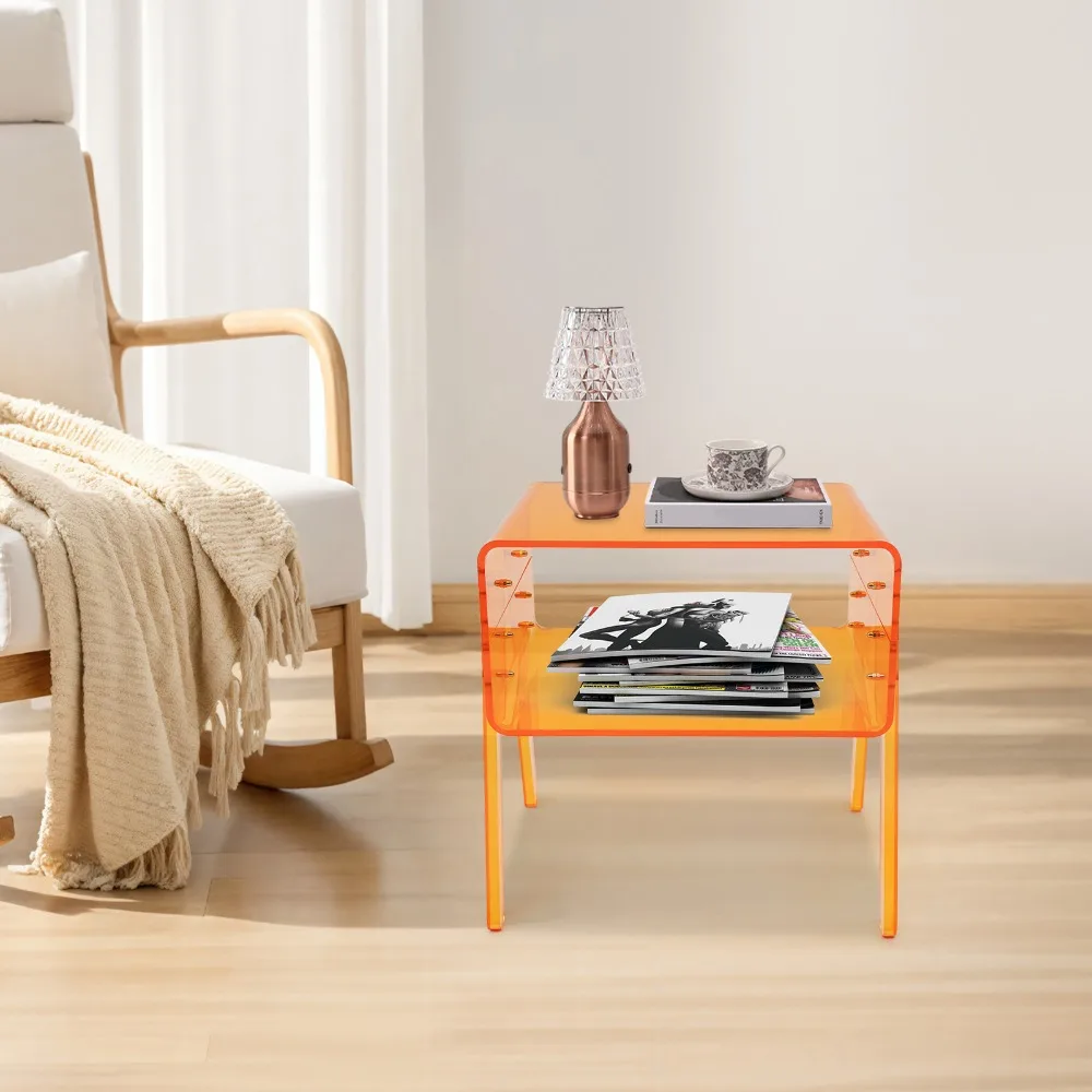 Orange Acrylic Modern Minimalist 2-Tier Side Table – 15kg/33Lbs Load Capacity, 403043.2cm Freestanding, Open Storage End Table