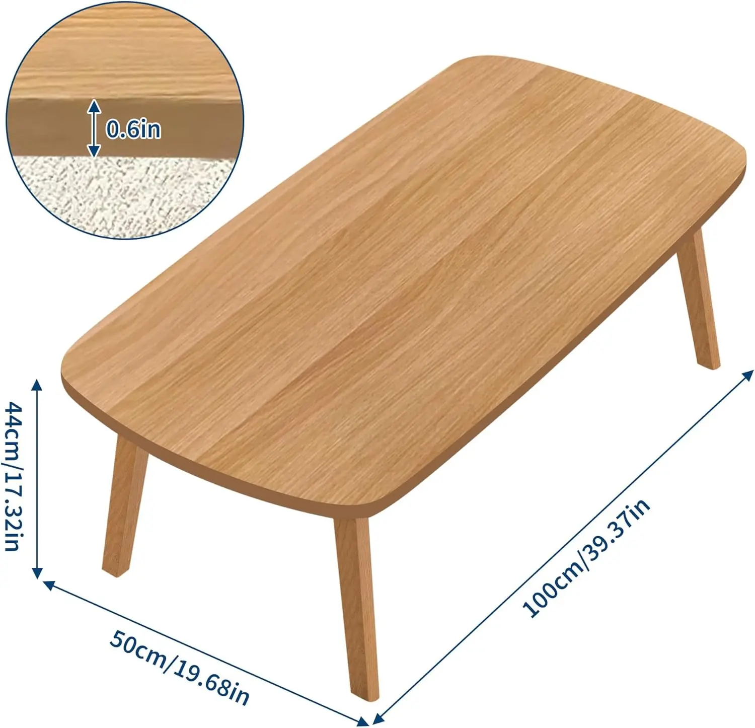 Rectangular Wooden Foldable Coffee Sofa Table Tatami Tea Table with Folding Legs Portable Laptop Desk for Home Office Balcony