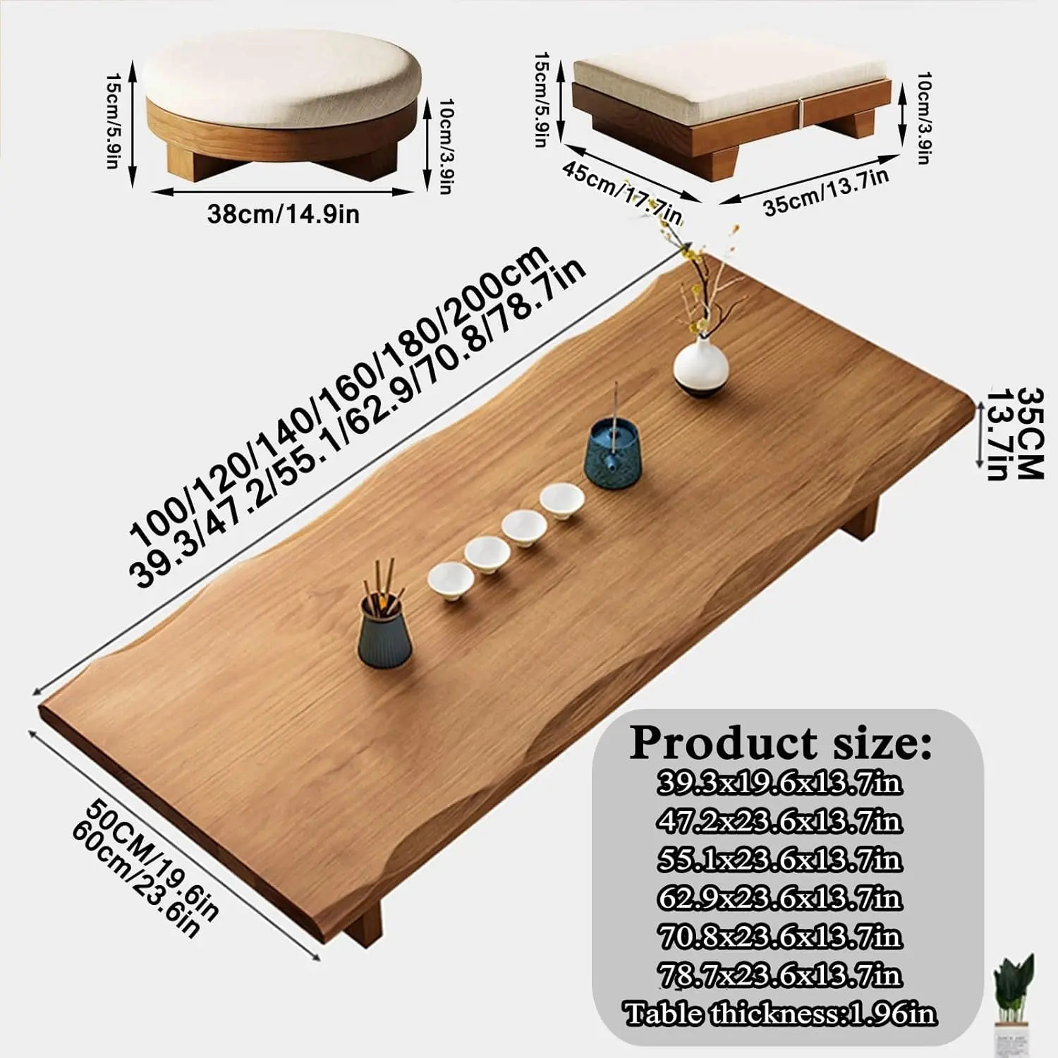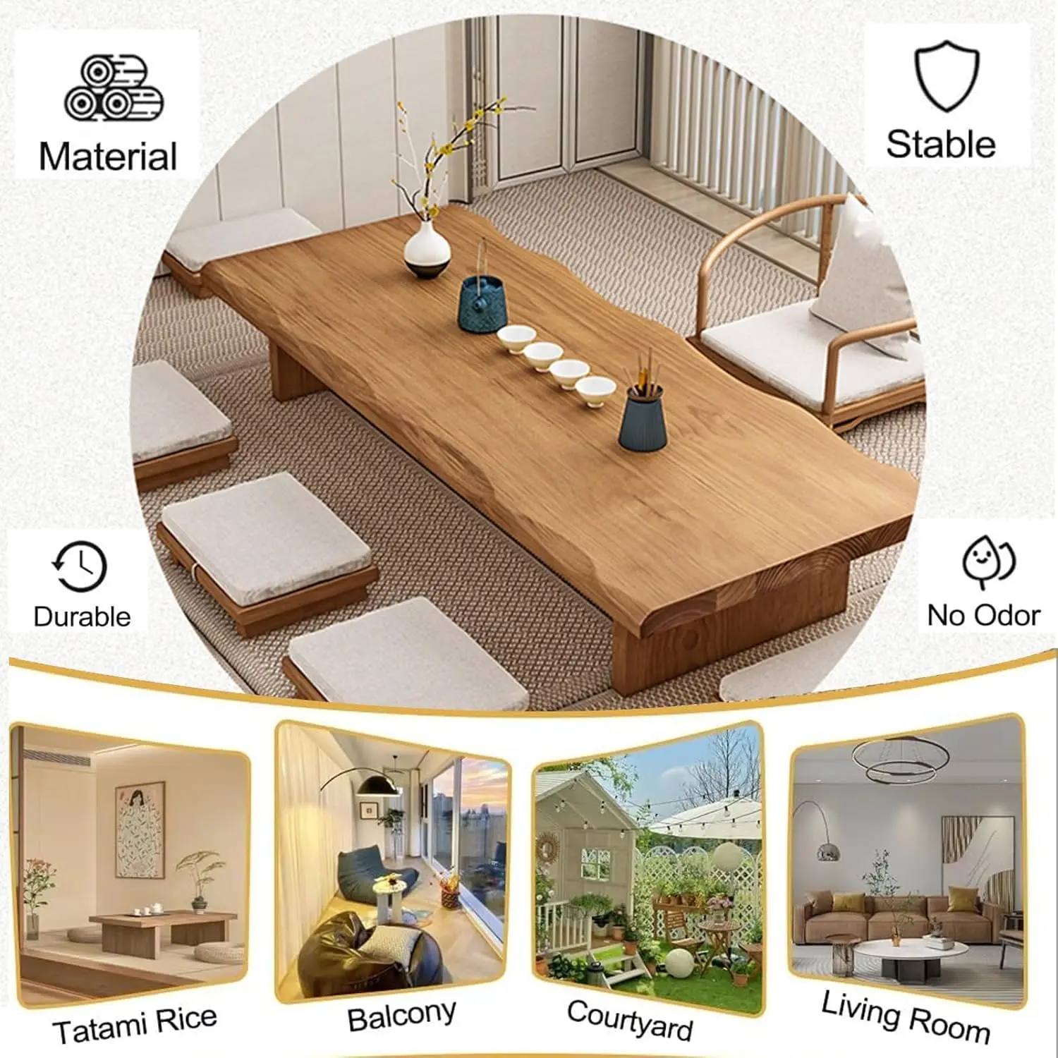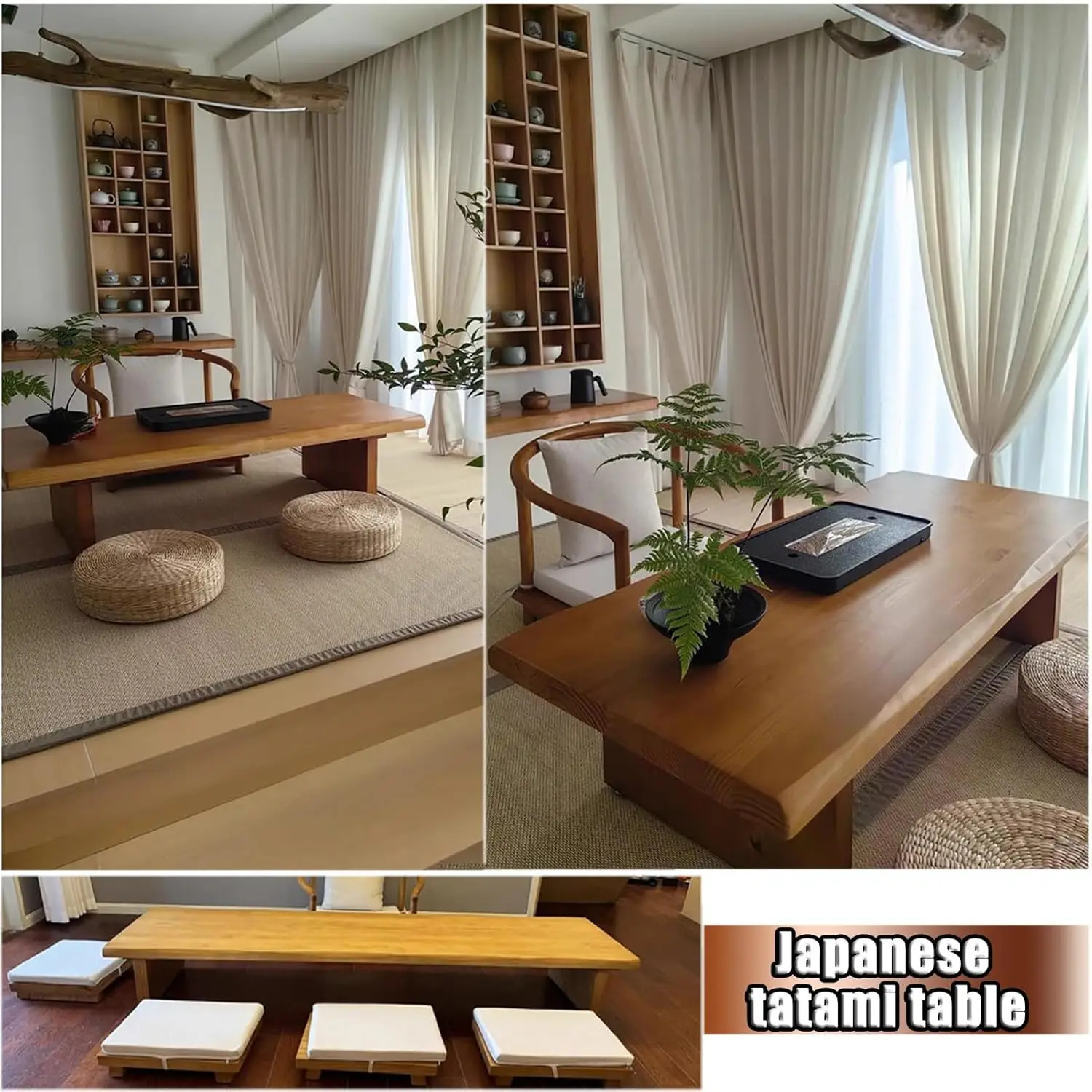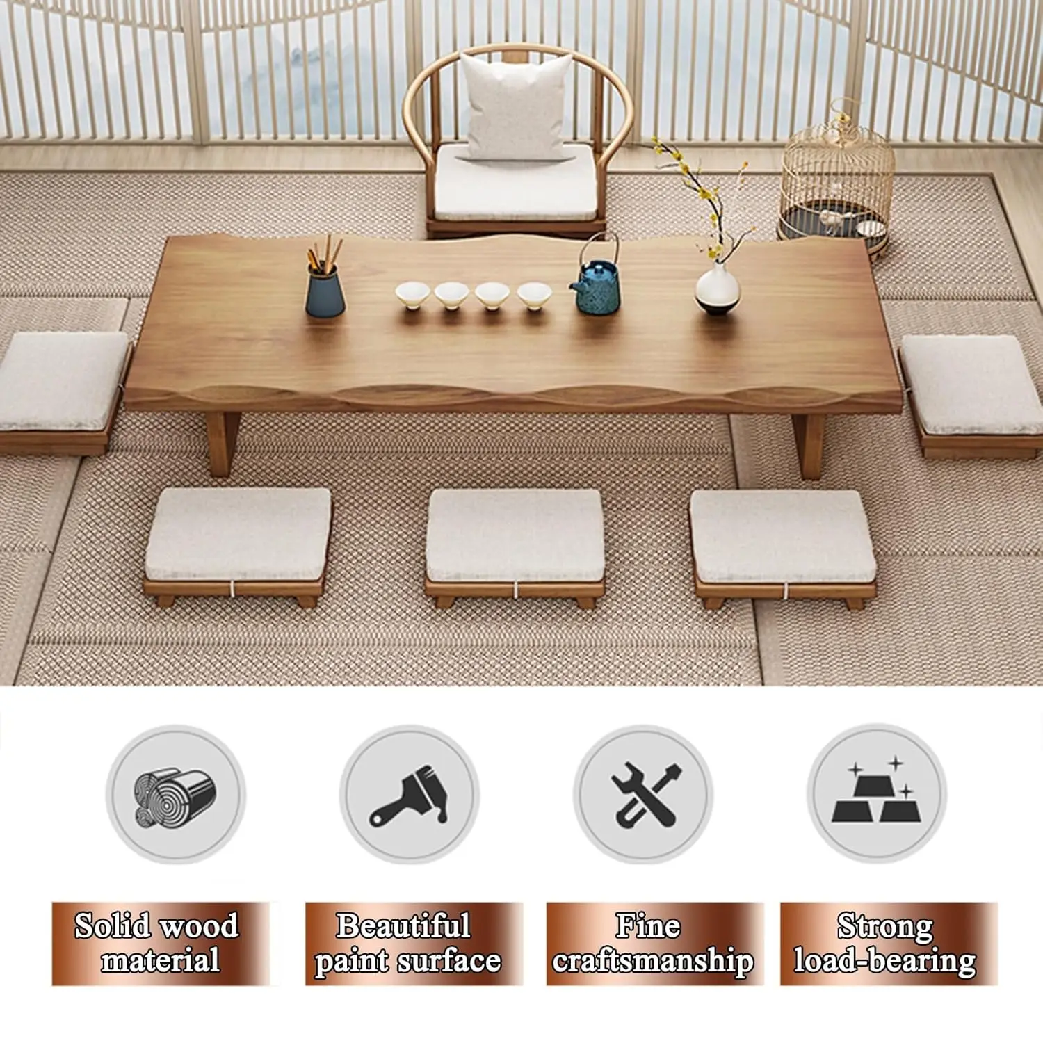 Solid Wood Low Floor Table Meditation Tea Ceremony Living Room 47.2×23.6×13.7in, Customized